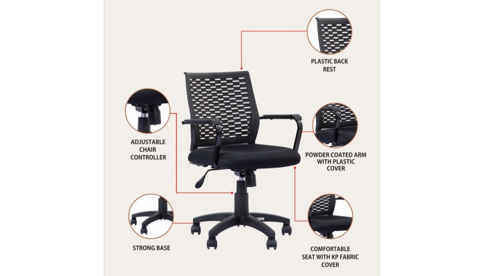 • Features : PP Backrest comfort & air flow, comfort arm , Height adjustable gas lift and base with Castors and Strong base