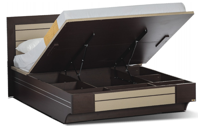 1. Unique two-tone bed design with half lift hydraulic storage.