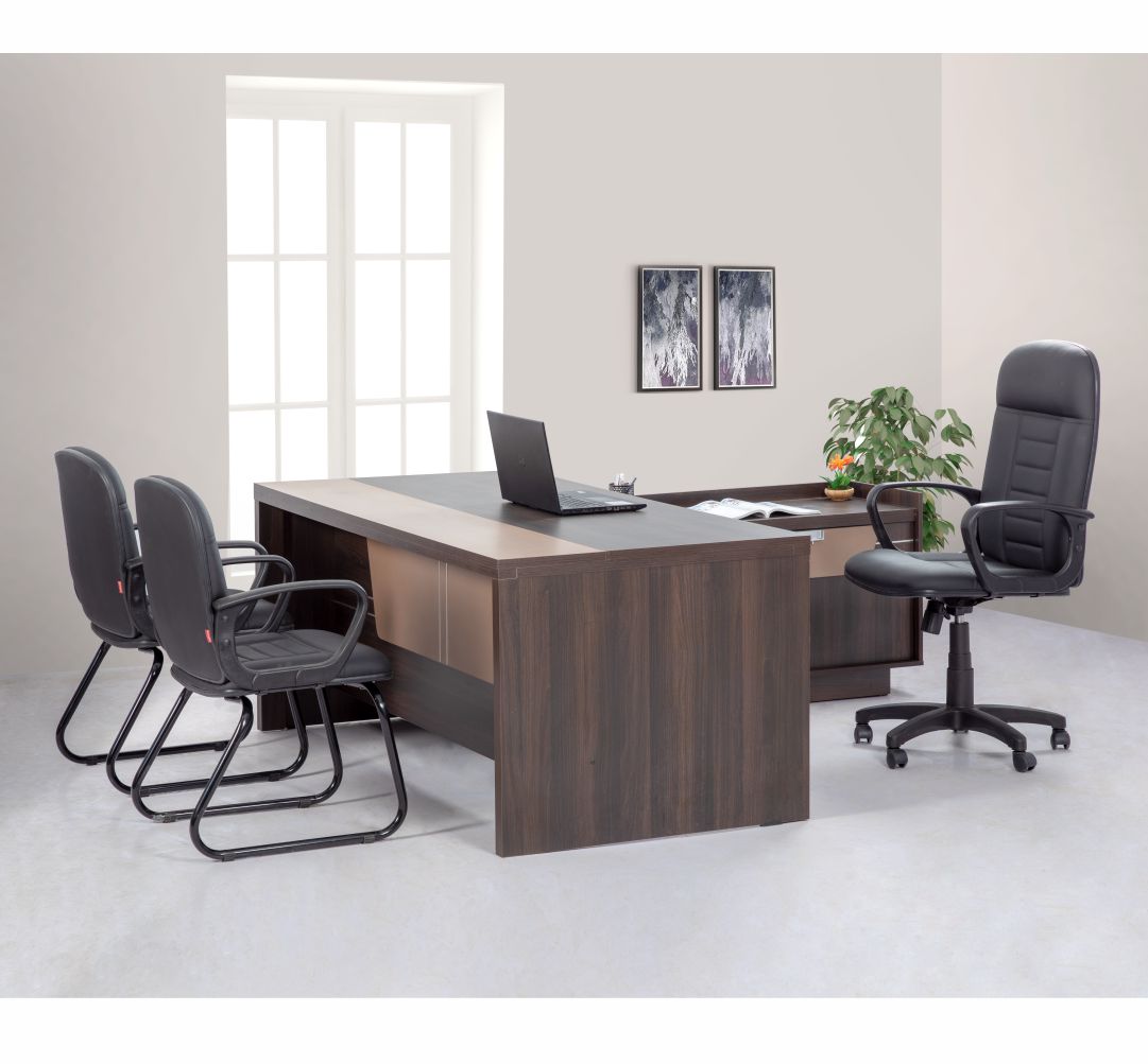 - Features : “1. All new design two tone design with melamine Boards. 2. Unique two tone table top with double edge design. 3. Attractive looking two tone modesty panel. 4. Movable side storage, can be positioned at left or right side of the table. 5. side storage provided with two drawers and two shutters for storage purpose. 6. Solid 40mm, thick looking top provided for side storage.”