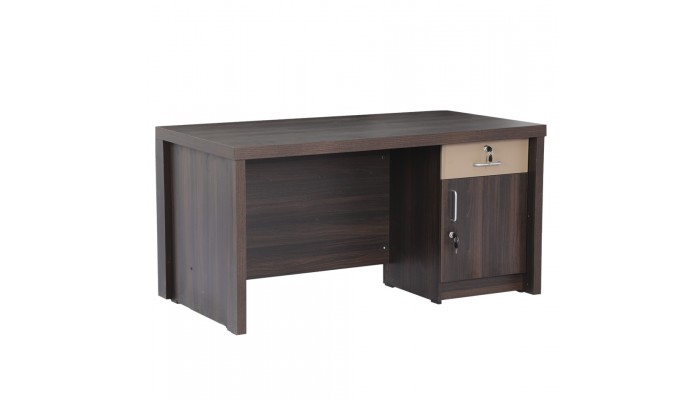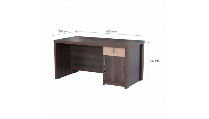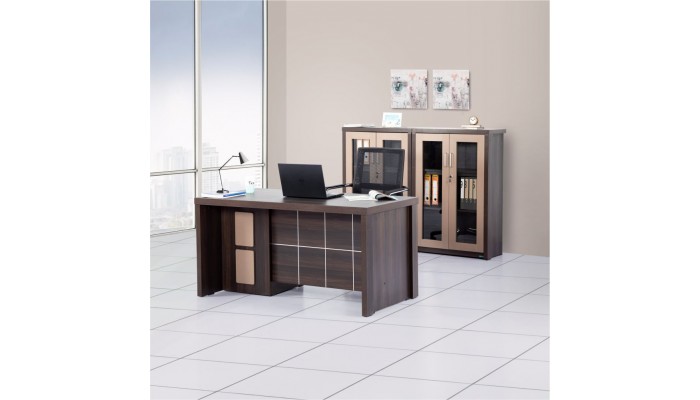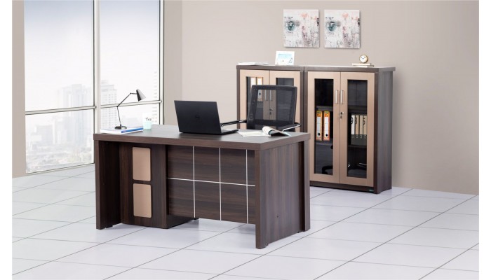 Features : 1. Two tone unique design. 2. Executive table with storage. 3. Solid looking 50MM thick top with protective PVC edges. 4. provision for smartphone wireless charging & cable with USB dock in the table top. 5. The storage in the side unites can comfotably accomodate A4 size files & with lock for safty. 6. D-type handles for storage shutter and drawerfront. 7. Modesty panel provided with aluminium beading insert & decorative add-on panel.
