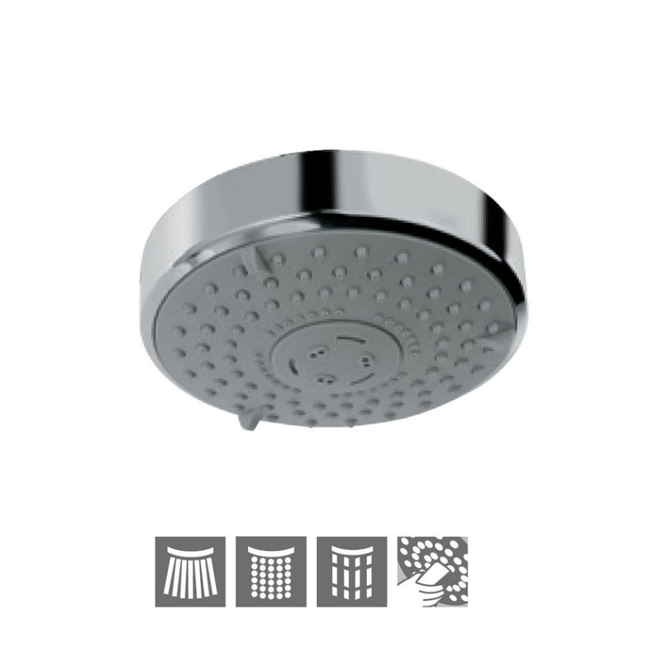 Description : Overhead Shower ø120mm Round Shape Multi Flow (ABS Body Chrome Plated with Gray Face Plate) with Rubit Cleaning System