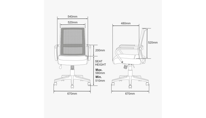 • Finish : Mesh Fabric, Artificial leather and chrome finish.