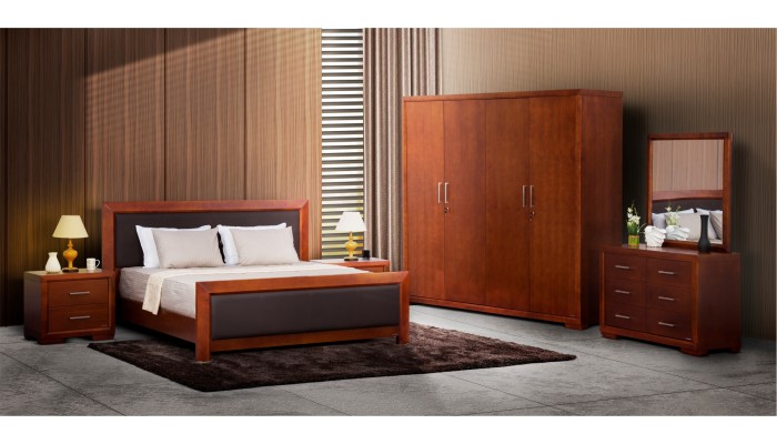 • Emerson queen size bed [NBEM003] + 4 door wardrobe [NWEM001] + Dressing table [NDEM001] + Night stand [NCEM001]